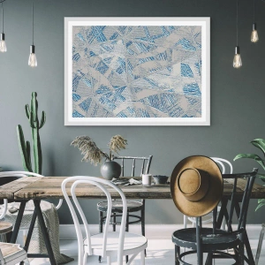 Affiche dans un cadre blanc - Poster - Dans un labyrinthe bleu-gris - 70x50 cm