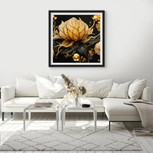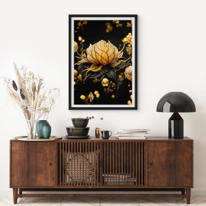 Affiche dans un cadre noir - Poster - Fleur dorée sur fond sombre - 100x70cm - Fragilité subtile - Décoration murale moderne pour le salon et la chambre ARTTOR