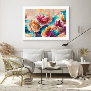 Affiche dans un cadre blanc - Poster - Splendeur colorée du bouquet - 91x61 cm