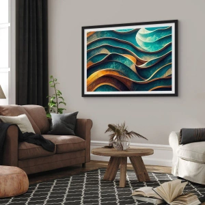 Les vagues et les formes irrégulières évoquent l'eau en mouvement ou les formations rocheuses naturelles, conférant à l'image un effet apaisant et relaxant. De subtils jeux d'ombres et de lumières, ainsi qu'une variété de textures, rendent cette affiche parfaite pour les intérieurs modernes comme plus classiques, ajoutant profondeur et style.