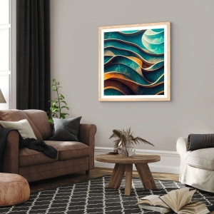 Affiche dans un chêne clair - Poster - Méandres de bleu - 40x40 cm