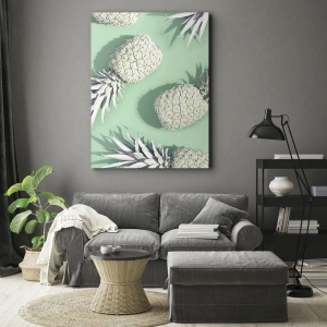 Impression sur toile - Image sur toile - Ananas blancs sur fond pastel dans un style minimaliste - 120x50cm - Ils se combinent très bien avec la menthe - Décoration murale moderne pour le salon et la chambre ARTTOR