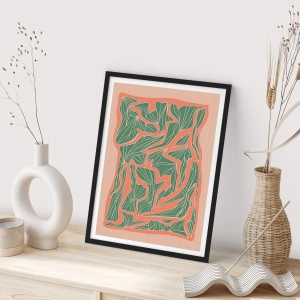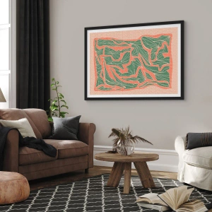 Affiche dans un cadre noir - Poster - Un motif végétal dans les tons de vert et d'orange - 100x70cm - La lutte entre le corail et la verdure - Décoration murale moderne pour le salon et la chambre ARTTOR