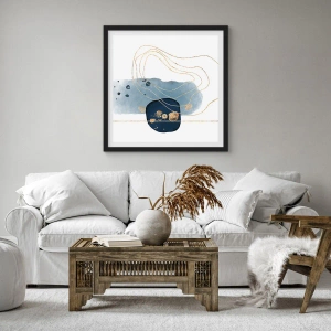 Affiche dans un cadre noir - Poster - Une composition abstraite moderne dans des tons de bleu et d'or. - 50x70cm - Fantaisie bleu et or - Décoration murale moderne pour le salon et la chambre ARTTOR