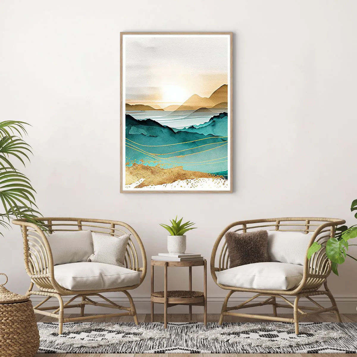 Affiche dans un chêne clair - Poster - Au frontière de l’abstraction – paysage - 70x100 cm