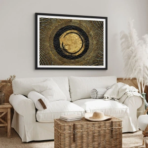 Affiche dans un cadre noir - Poster - Composition géométrique en noir et or avec des rayons - 100x70cm - Composition glamour - Décoration murale moderne pour le salon et la chambre ARTTOR