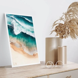 Affiche - Poster - Vue sur la plage et les vagues de la mer dans des tons turquoise - 100x70cm - La rencontre éternelle - Décoration murale moderne pour le salon et la chambre ARTTOR