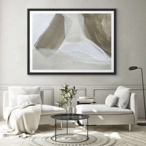 Affiche dans un cadre noir - Poster - Abstraction délicate dans les tons beige et blanc - 100x70cm - Une vague de blanc - Décoration murale moderne pour le salon et la chambre ARTTOR