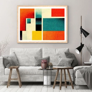 Affiche dans un chêne clair - Poster - Abstraction géométrique – bonne énergie - 30x30 cm