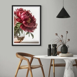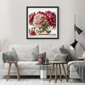 Affiche dans un cadre noir - Poster - Un bouquet de pivoines dans les tons de rose et de rouge - 100x70cm - En pleine floraison de beauté - Décoration murale moderne pour le salon et la chambre ARTTOR