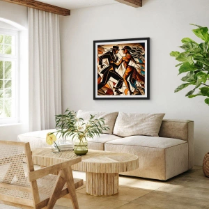 Affiche dans un cadre noir - Poster - Un couple dynamique dansant sous une forme abstraite. - 100x70cm - Danse de passion et de volupté - Décoration murale moderne pour le salon et la chambre ARTTOR