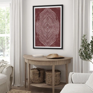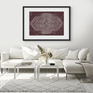 Affiche dans un cadre noir - Poster - Ondes symétriques en lignes blanches sur fond marron - 100x70cm - L'espace parle - Décoration murale moderne pour le salon et la chambre ARTTOR