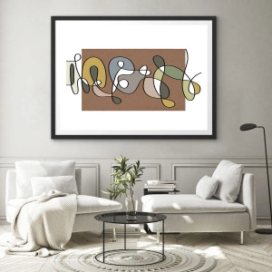 Affiche dans un cadre noir - Poster - Abstraction colorée avec des taches et des lignes - 70x50cm - Une abstraction qui mérite le sourire - Décoration murale moderne pour le salon et la chambre ARTTOR