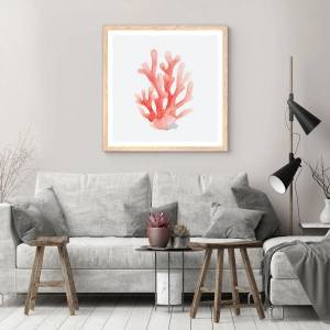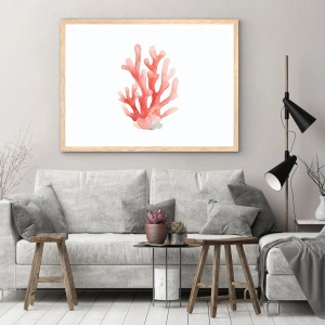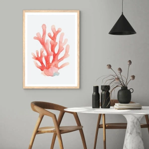 Affiche dans un chêne clair - Poster - Corail couleur corail - 50x40 cm