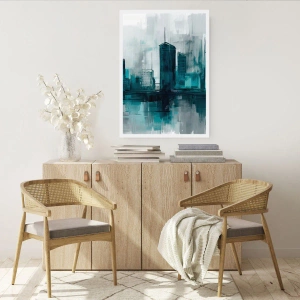 Affiche - Poster - Un panorama urbain moderne dans des tons bleus - 50x70cm - Une ville couleur de pluie - Décoration murale moderne pour le salon et la chambre ARTTOR