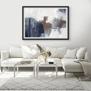 Affiche dans un cadre noir - Poster - Formes bleues et brunes - 70x100 cm