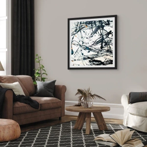 « Abstraction expressionniste » est une affiche au caractère dynamique et expressif, inspirée de la peinture gestuelle. La composition repose sur des lignes enchevêtrées et des taches de peinture irrégulières qui créent un jeu unique de contrastes entre le noir et le blanc.