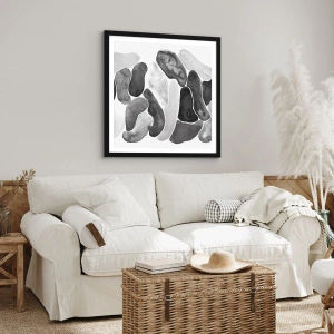 Affiche dans un cadre noir - Poster - Abstraction en noir et blanc avec des taches irrégulières sur fond blanc - 100x70cm - Abstraction rocheuse - Décoration murale moderne pour le salon et la chambre ARTTOR