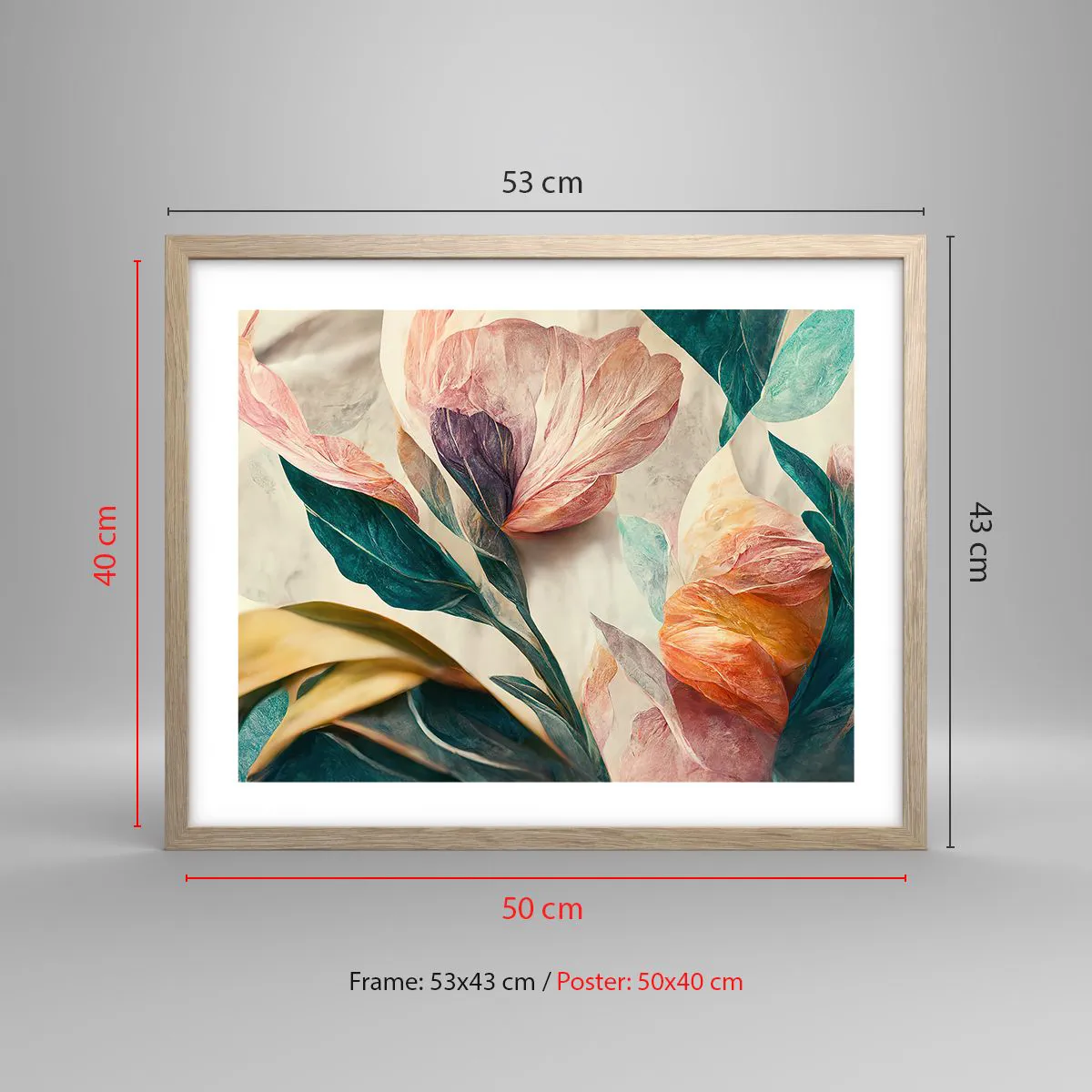 Affiche dans un chêne clair - Poster - Fleurs des îles du sud - 50x40 cm