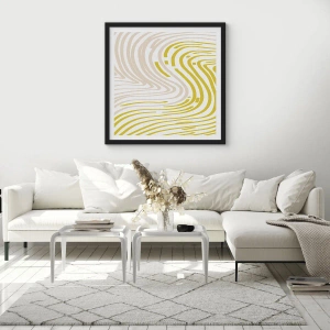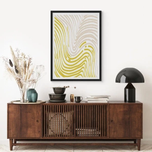 Affiche dans un cadre noir - Poster - Une composition abstraite de lignes ondulées dans des tons beige et jaune. - 50x70cm - Une composition au léger virage - Décoration murale moderne pour le salon et la chambre ARTTOR