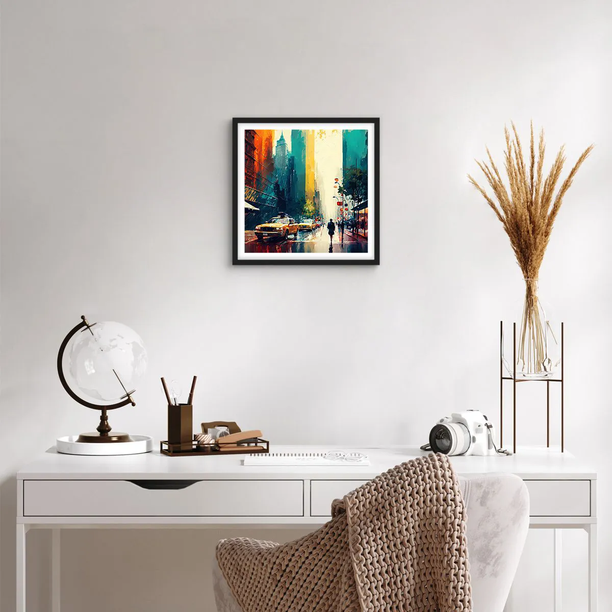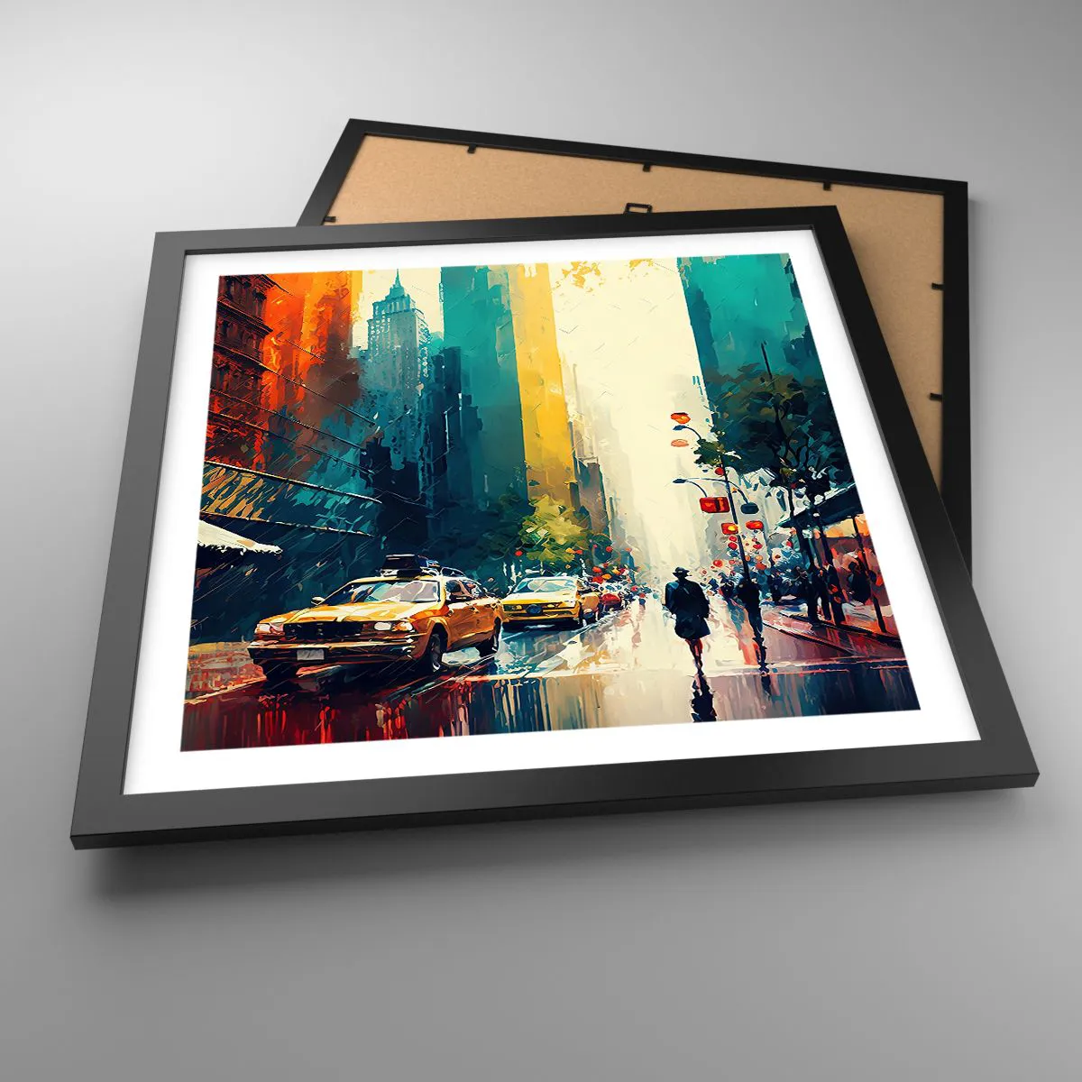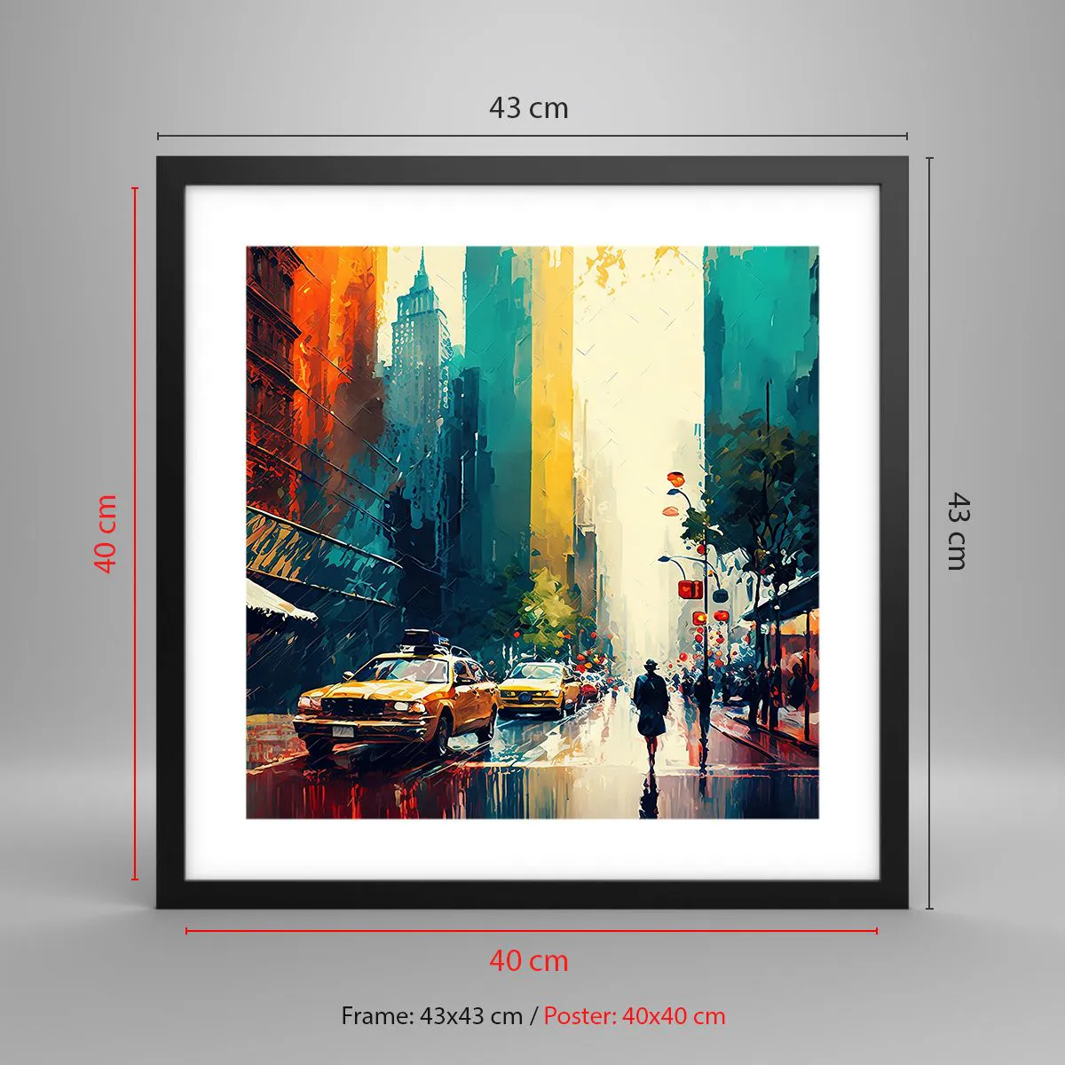 Affiche dans un cadre noir - Poster - New York – ici même la pluie est colorée - 40x40 cm