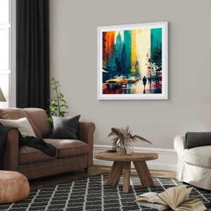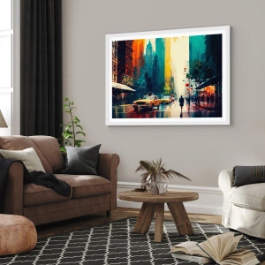 Affiche dans un cadre blanc - Poster - New York – ici même la pluie est colorée - 91x61 cm