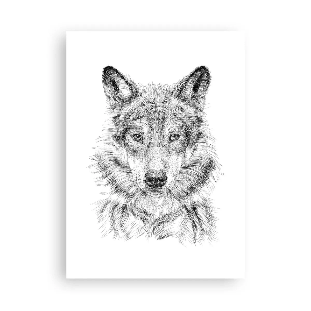 Affiche - Poster - Dessin détaillé d'un loup en noir et blanc - 50x70cm - Un leader né - Décoration murale moderne pour le salon et la chambre ARTTOR