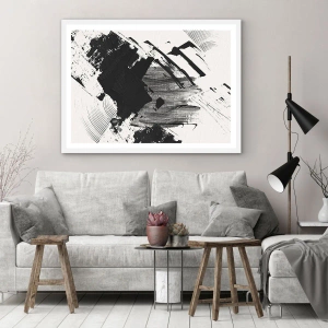 Affiche dans un cadre blanc - Poster - Abstraction – expression du noir - 61x91 cm
