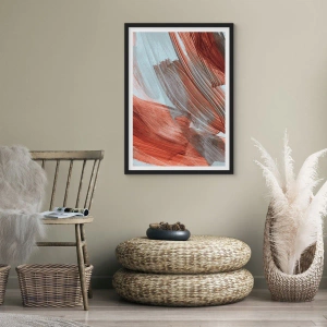 Affiche dans un cadre noir - Poster - Coups de pinceau dynamiques dans des tons chauds - 50x70cm - Abstraction venteuse et automnale - Décoration murale moderne pour le salon et la chambre ARTTOR