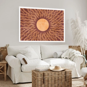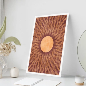 Affiche - Poster - Soleil stylisé avec des rayons dans des tons dorés et marron - 50x70cm - Icône du soleil - Décoration murale moderne pour le salon et la chambre ARTTOR
