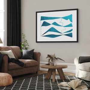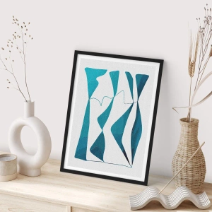 Affiche dans un cadre noir - Poster - Une composition abstraite dans des tons de bleu avec des lignes dynamiques. - 50x70cm - Abstraction : composé turquoise - Décoration murale moderne pour le salon et la chambre ARTTOR
