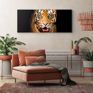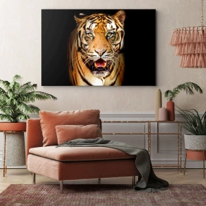 Impression sur toile - Image sur toile - Un tigre avec la gueule ouverte sur un fond noir - 100x70cm - Le coeur sauvageon - Décoration murale moderne pour le salon et la chambre ARTTOR