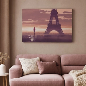 Impression sur toile - Image sur toile - Une silhouette regardant la Tour Eiffel à la lumière du soleil couchant - 120x80cm - Seulement deux d'entre eux - Décoration murale moderne pour le salon et la chambre ARTTOR