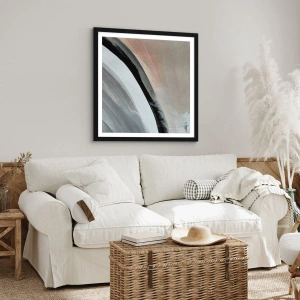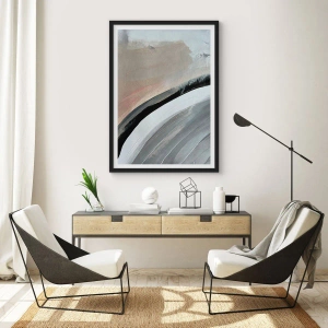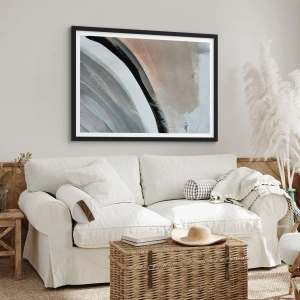 Affiche dans un cadre noir - Poster - Composition abstraite avec des lignes dans les tons de gris et de beige. - 50x70cm - Composition : arc de noir et gris - Décoration murale moderne pour le salon et la chambre ARTTOR