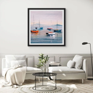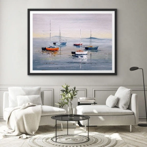 Affiche dans un cadre noir - Poster - Bateaux colorés sur une eau calme - 70x50cm - Un repos bien mérité - Décoration murale moderne pour le salon et la chambre ARTTOR