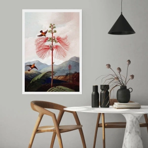 Affiche - Poster - Fleur exotique avec des colibris parmi les montagnes - 50x70cm - Dans un paradis tropical - Décoration murale moderne pour le salon et la chambre ARTTOR