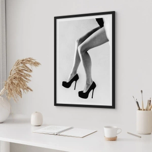 Affiche dans un cadre noir - Poster - Photographie en noir et blanc des jambes d'une femme en talons hauts - 50x70cm - Féminité éternelle - Décoration murale moderne pour le salon et la chambre ARTTOR
