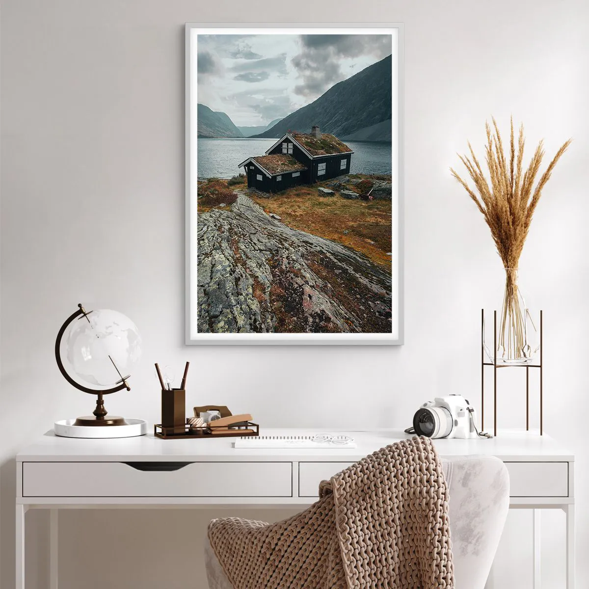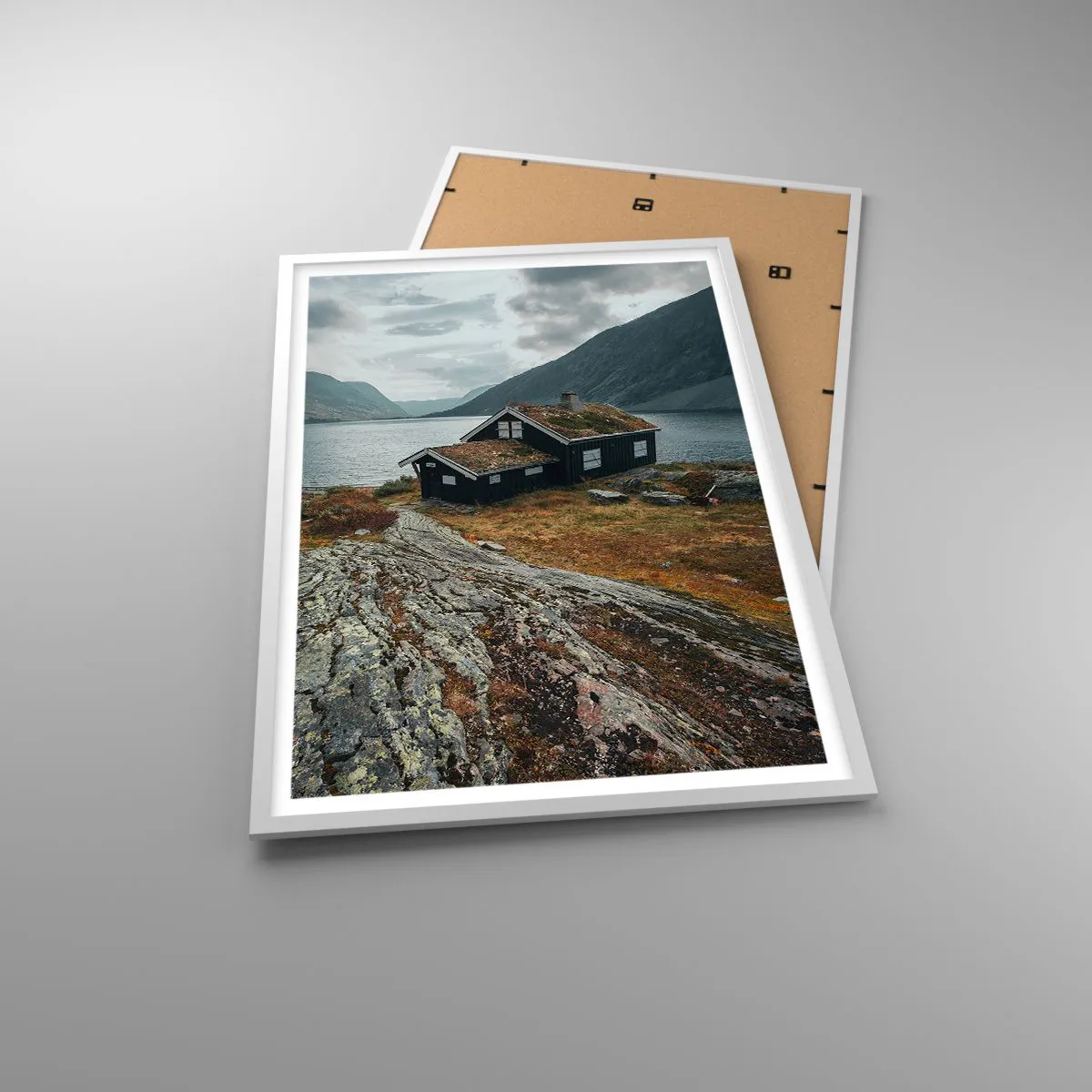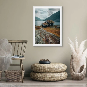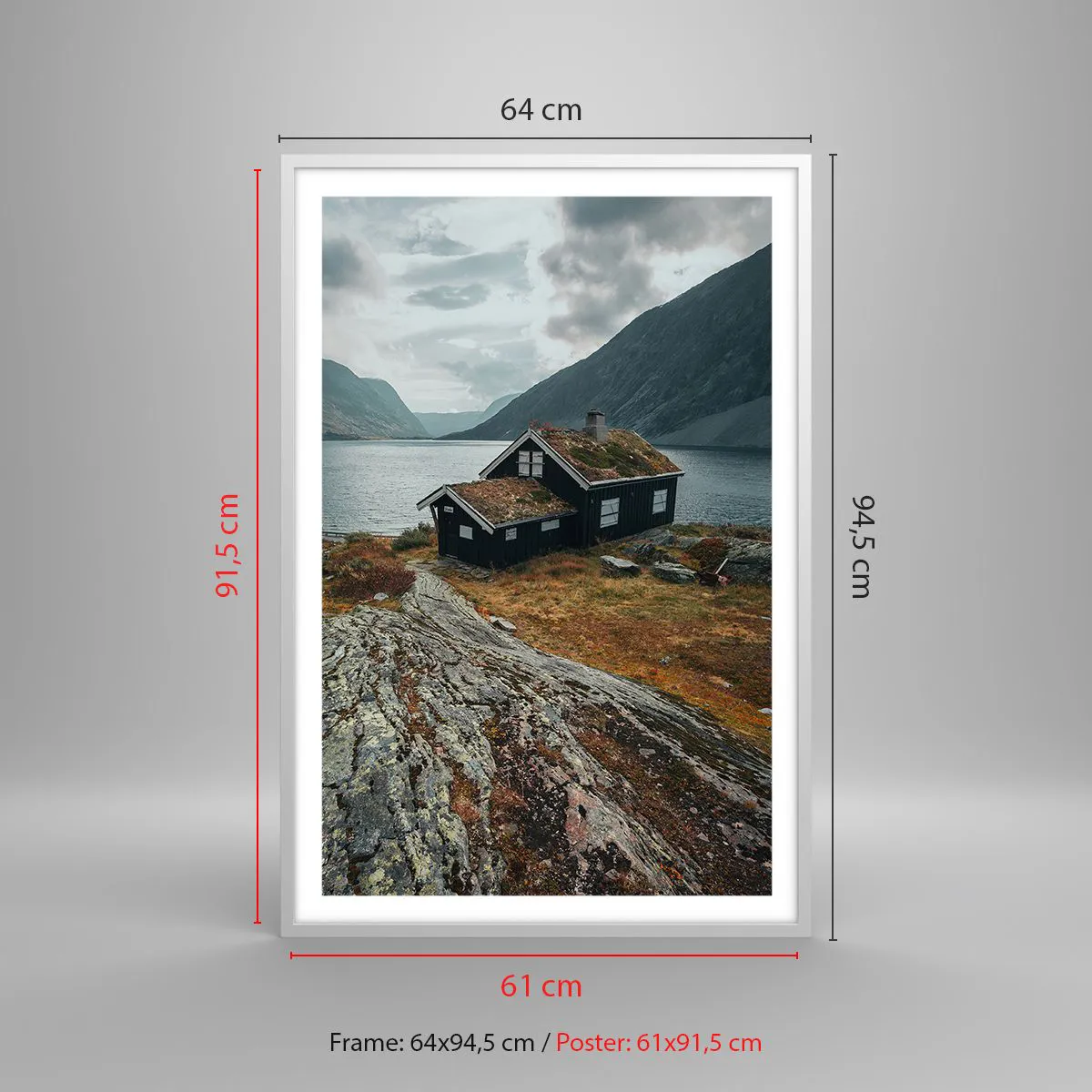 Affiche dans un cadre blanc - Poster - Une station estivale au bord du fjord - 61x91 cm