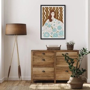 Affiche dans un cadre noir - Poster - Portrait en robe fleurie - 30x40 cm