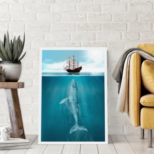 Affiche - Poster - Un navire à la surface de l'eau avec une baleine en dessous, dans une prise de vue surréaliste - 50x70cm - Il vaut mieux ne pas savoir - Décoration murale moderne pour le salon et la chambre ARTTOR