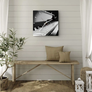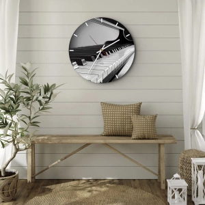 L'horloge est produite avec un verre de sécurité de 4 mm d'épaisseur. La technologie de fabrication de l'horloge est conforme à la classe de sécurité 2B2 selon la norme PN-EN 12600 : 2004, qui garantit la résistance aux chocs. L'horloge en verre est prête à être accrochée - elle a une attache en métal attaché à l'arrière et une entretoise en mousse régulant la distance uniformément de l'horloge par rapport au mur. L'horloge a un mécanisme flottant silencieux alimenté par une pile 1.5V - pile AA (pile non incluse).