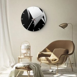 L'horloge est produite avec un verre de sécurité de 4 mm d'épaisseur. La technologie de fabrication de l'horloge est conforme à la classe de sécurité 2B2 selon la norme PN-EN 12600 : 2004, qui garantit la résistance aux chocs. L'horloge en verre est prête à être accrochée - elle a une attache en métal attaché à l'arrière et une entretoise en mousse régulant la distance uniformément de l'horloge par rapport au mur. L'horloge a un mécanisme flottant silencieux alimenté par une pile 1.5V - pile AA (pile non incluse).