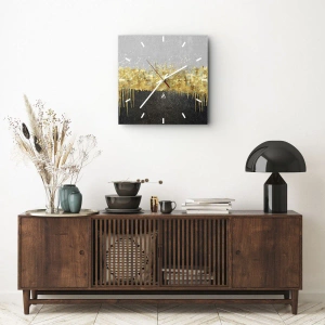 Horloge murale - In Depth and Up - Reflets dorés dans une composition artistique sur fond noir et gris