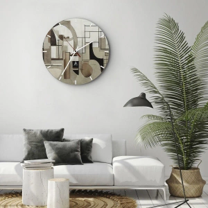 L'horloge est produite avec un verre de sécurité de 4 mm d'épaisseur. La technologie de fabrication de l'horloge est conforme à la classe de sécurité 2B2 selon la norme PN-EN 12600 : 2004, qui garantit la résistance aux chocs. L'horloge en verre est prête à être accrochée - elle a une attache en métal attaché à l'arrière et une entretoise en mousse régulant la distance uniformément de l'horloge par rapport au mur. L'horloge a un mécanisme flottant silencieux alimenté par une pile 1.5V - pile AA (pile non incluse).
