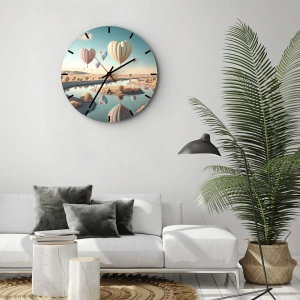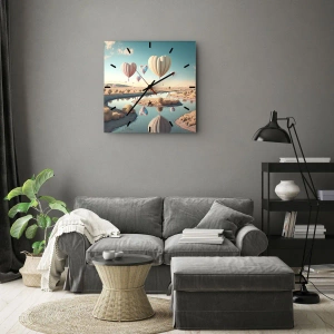 Horloge murale - Pendule murale - Des ballons en forme de cœur flottant au-dessus du paysage - 30x30cm - L'amour te permet de t'élever - Décoration murale moderne pour le salon et la chambre ARTTOR