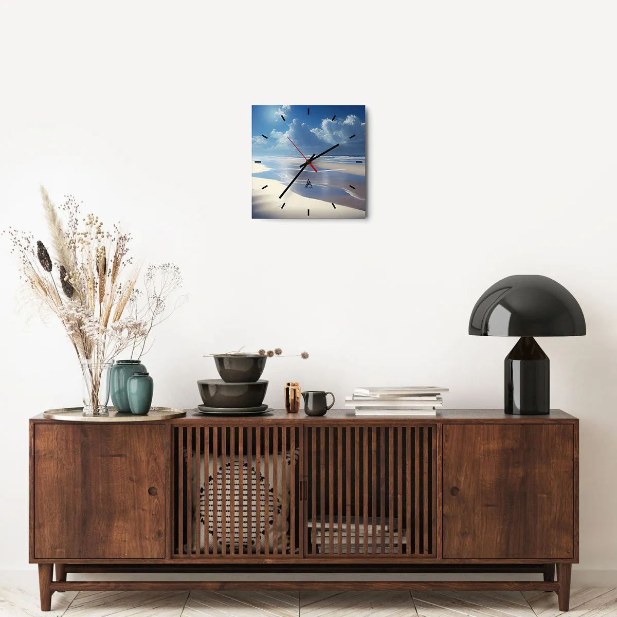Horloge murale - Pendule murale - Une plage de sable avec des vagues sous un ciel bleu - 30x30cm - Des vacances paradisiaques - Décoration murale moderne pour le salon et la chambre ARTTOR