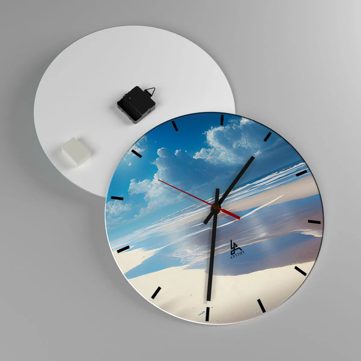 L'horloge est fabriquée à l'aide de technologies d'impression modernes, qui garantissent la préservation des couleurs naturelles et une saturation élevée des couleurs. La production d'horloges sur verre se déroule en plusieurs étapes. Une impression de haute qualité et deux couches de protection thermique liées au verre. Pour cela, nous utilisons la technologie innovante des fours de laminage du verre dans un environnement sous vide.
