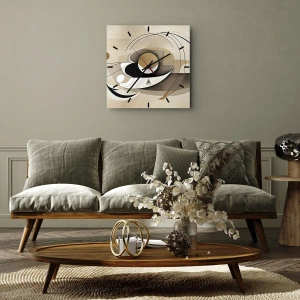 Horloge murale - Pendule murale - Composition abstraite dans les tons beige et noir - 30x30cm - Composition : l'essence des choses - Décoration murale moderne pour le salon et la chambre ARTTOR