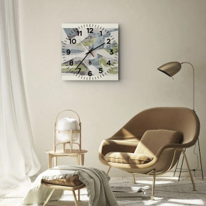 Horloge murale - Composition sous verre - Abstractions géométriques en vert et bleu sur fond clair