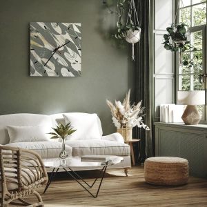 Horloge murale - Pendule murale - Formes dynamiques dans des tons de vert et d'or - 30x30cm - Abstraction rythmique - Décoration murale moderne pour le salon et la chambre ARTTOR